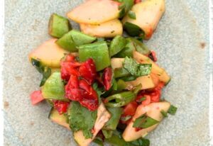Snappy Strawberry Salad – with Masala-Tov Vinaigrette Strawberry season is so short. And this year it seems like nature is giving us a gift with the juiciest berries. Run, don’t