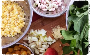 Cranberry Beans + Gold Cherry Tomatoes + Arugula + Corn + Apples I’d heard about succotash when I lived in Rhode Island, but had never really had any before. Each